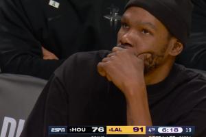 GIF-肯纳德三分再中 KD表情不妙