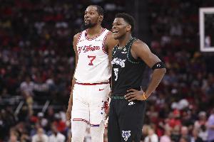 赛后,爱德华兹和杜兰特拥抱致意,当被问及两人对话内容时,爱德华兹笑着说道:“我在跟他要球衣,我已经有一些了,但还想要一件。”